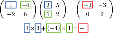 | $=$ | $\left(\begin{array}{cc}1\times3+(-4)\times1&1\times5+(-4)\times2\\-2\times3+6\times1&-2\times5+6\times2\end{array}\right)$ |