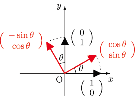 次の形の行列はベクトルを角 $\theta$ だけ回転させる変換を表す.