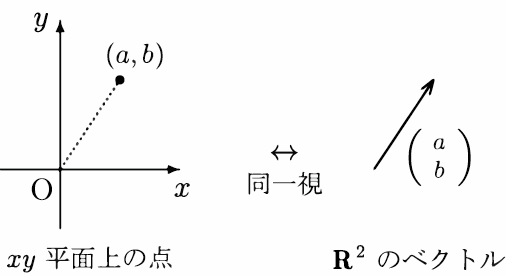 ここで見ているような「数」を並べて表されるベクトルは,特に「数ベクトル」と呼ばれるのである.