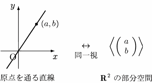$W$ が $\mathbf{R}^2$ の部分集合であって,$W$ 自体もベクトル空間となっているとき,すなわち